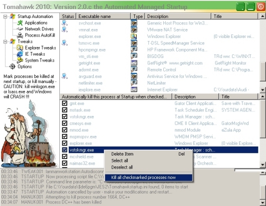 Windows-Utility: Simplified Windows Startup Management, Autokill unwanted processes at Startup and On Demand, Connect and disconnect (map) Network Drives with one click, Start Appz with any priority, Some nice Explorer tweaks